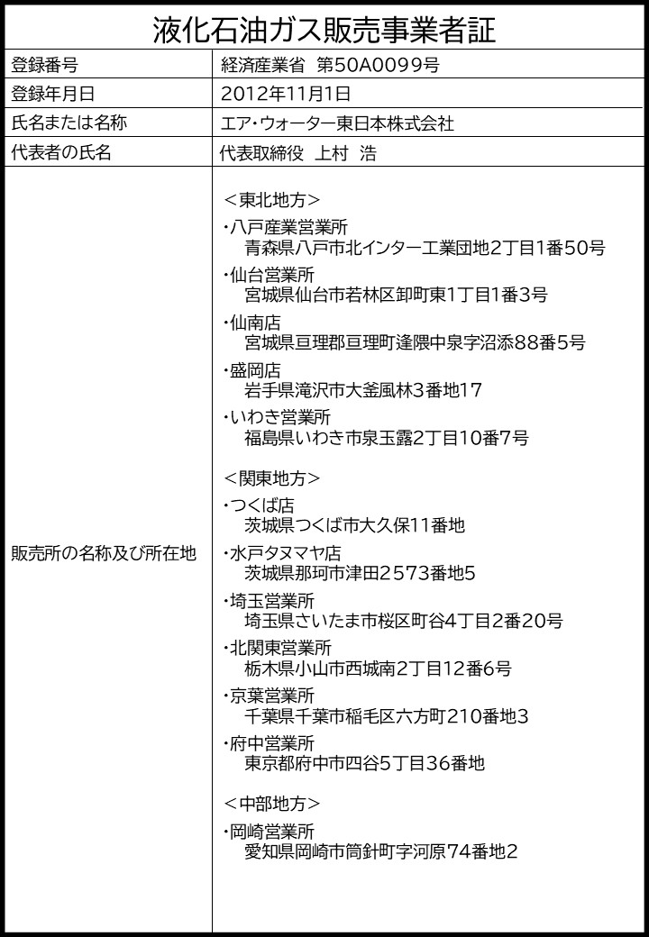 液化石油ガス販売事業者証の掲示について